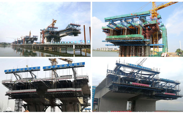 (2)在墩上進行零號塊施工并以斜拉托架做施工平臺時,在平臺邊緣處,應(yīng)設(shè)安全防護設(shè)施。