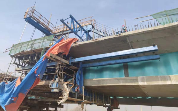 5、掛籃在安裝、行走及使用中,應(yīng)嚴格控制荷載,防止過大的沖擊、震動。如需在掛籃上另行增加設(shè)施(如防雨棚、防寒棚等),不得損壞掛籃結(jié)構(gòu)及改變其受力形式。